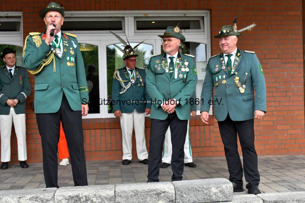 Mit 28 Ringen setzte sich Oberst Richard Zumloh von der 1. Kompanie Kreuzritter gegen seine Mitbewerber durch und erfüllte sich damit einen Herzenswunsch. Pünktlich um 17:00 Uhr trat Präsident Uwe Landwehr am Montag vor das Schützenhaus und verkündete dem jubelnden Schützenvolk: „Wir haben einen neuen König!“
