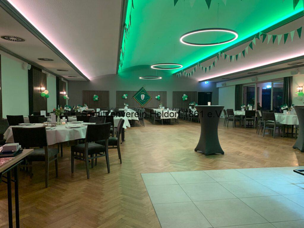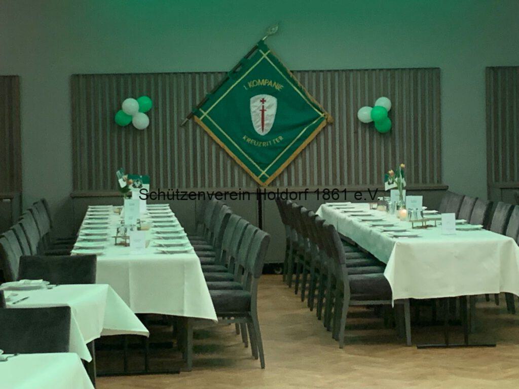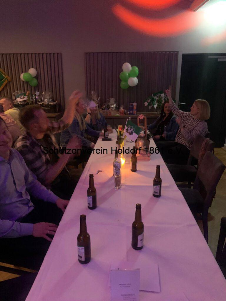 Mit großer Freude konnte die Kompanieführung 111 Teilnehmer begrüßen, die gemeinsam mit DJ Heini aus Lorse bis in die frühen Morgenstunden feierten. Unter den Anwesenden befand sich auch der aktuelle Holdorfer Schützenkönig – Richard III. Zumloh – in Begleitung seines Hofstaats.