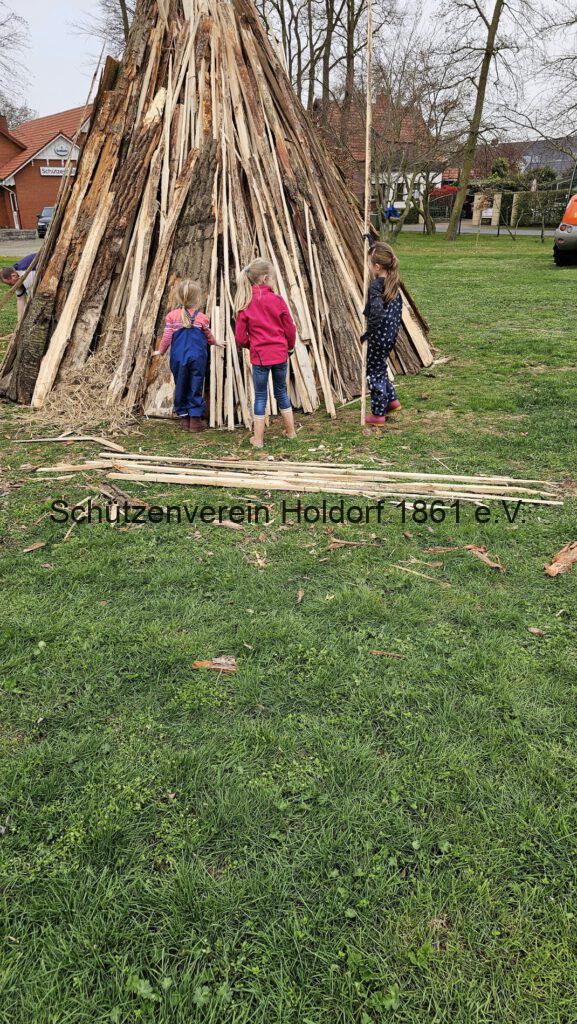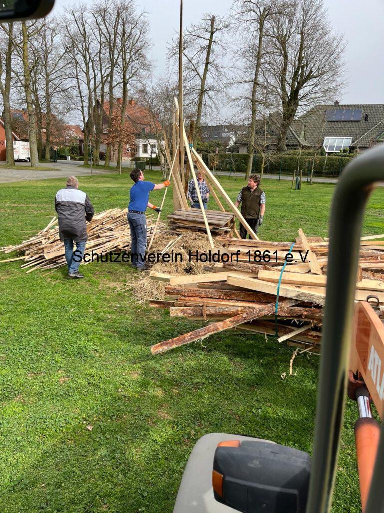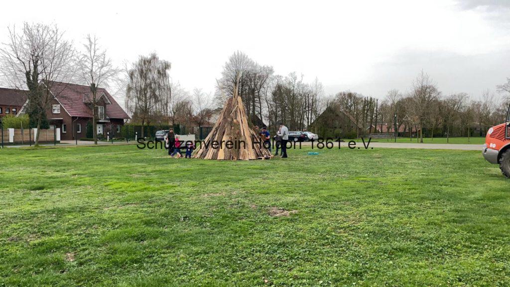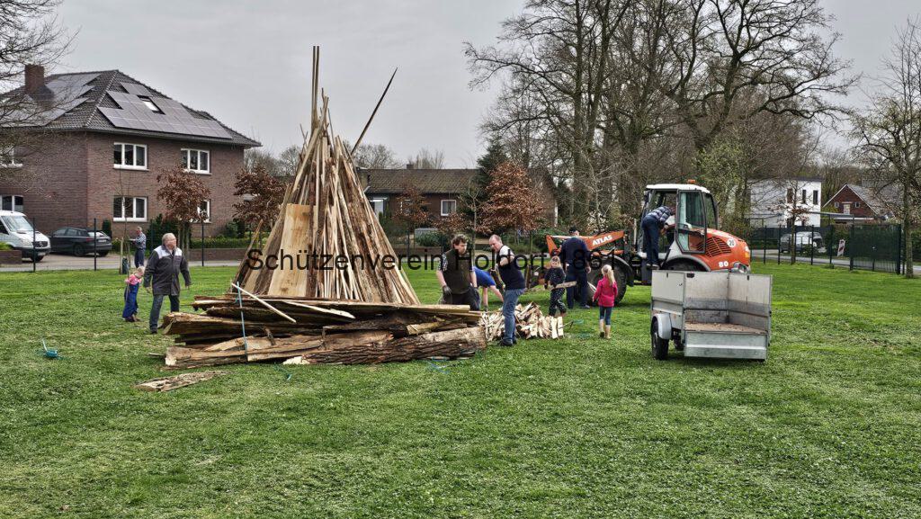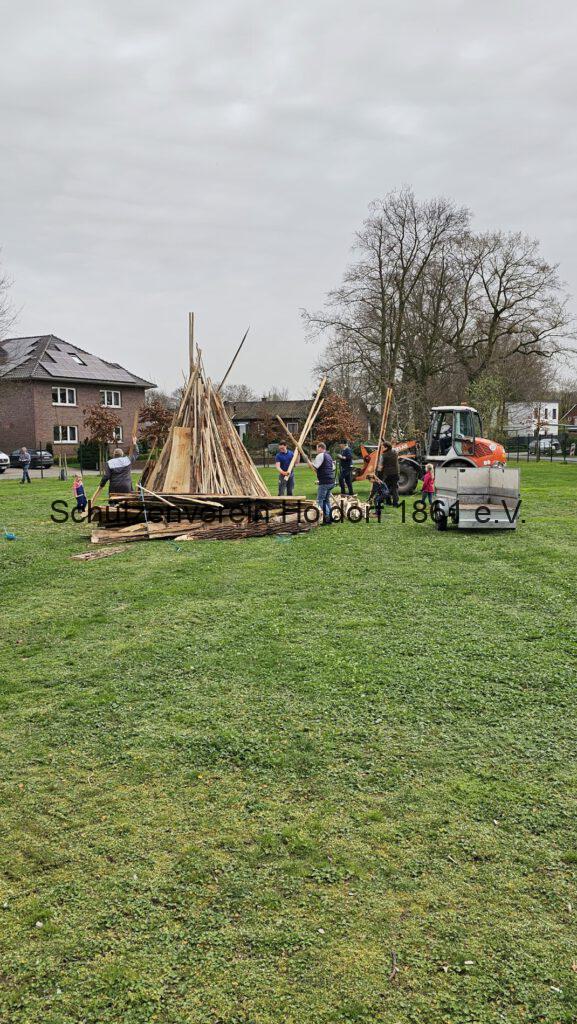 Die Vorbereitungen für das Osterfeuer am 31.03.2024 sind nun abgeschlossen, und das Feuer wurde dank der tatkräftigen Unterstützung vieler fleißiger Helfer aufgebaut. Der Schützenplatz wurde liebevoll hergerichtet, um einen geselligen Abend zu gewährleisten.